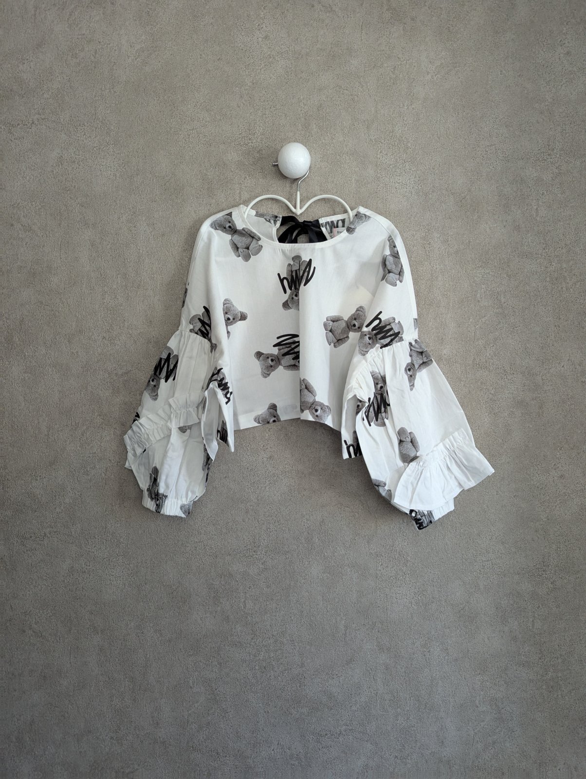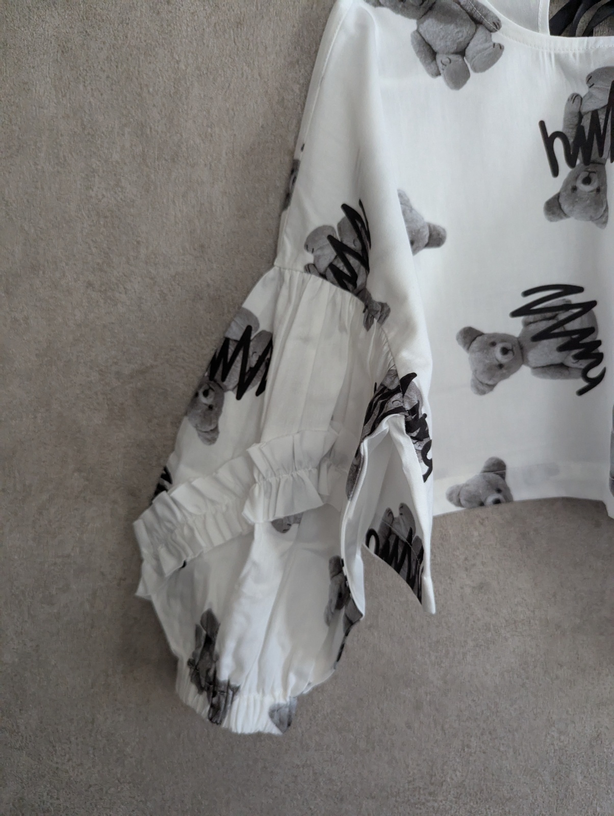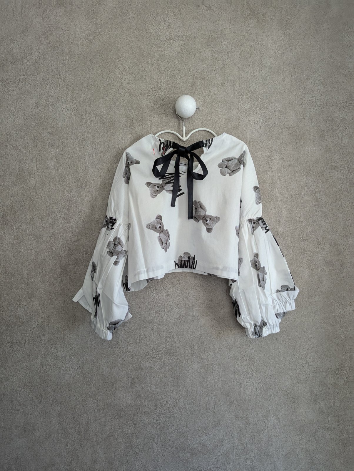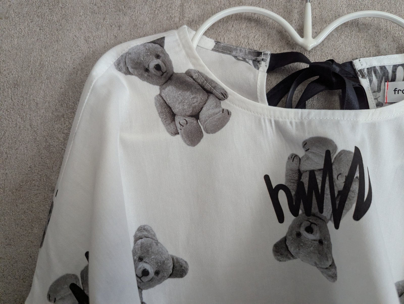 franky grow GRAFFITIED BEAR FRILL SLEEVES PO ホワイト キッズ・レディース