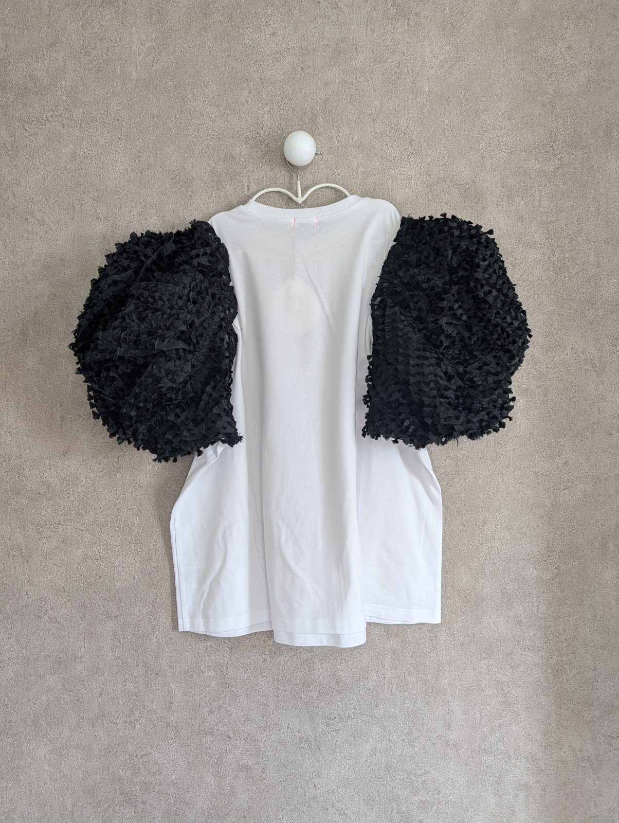 franky grow RIBBON ORGANDY BUBBLE SLV TEE ホワイト*ブラック