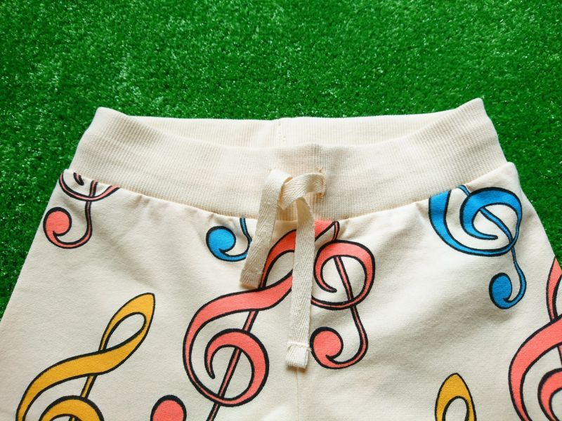 カラフルなト音記号がプリントされたスウェットパンツ。