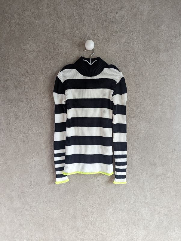 franky grow BORDER HIGH-NECK RIB STITCH KNIT ホワイト*ブラック