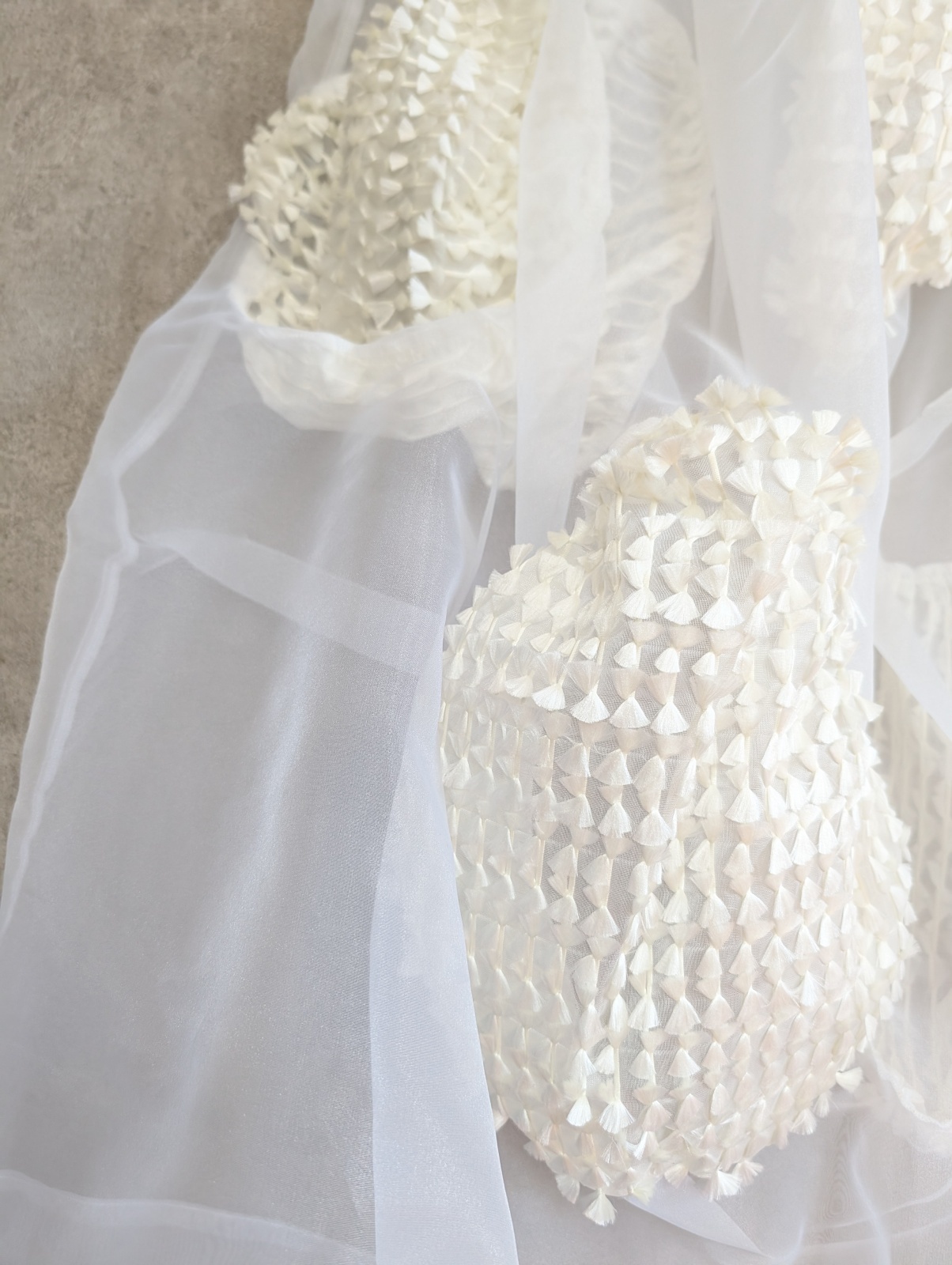 オーガンジーの透け感と、リボンオーガンジーからなる立体クマの