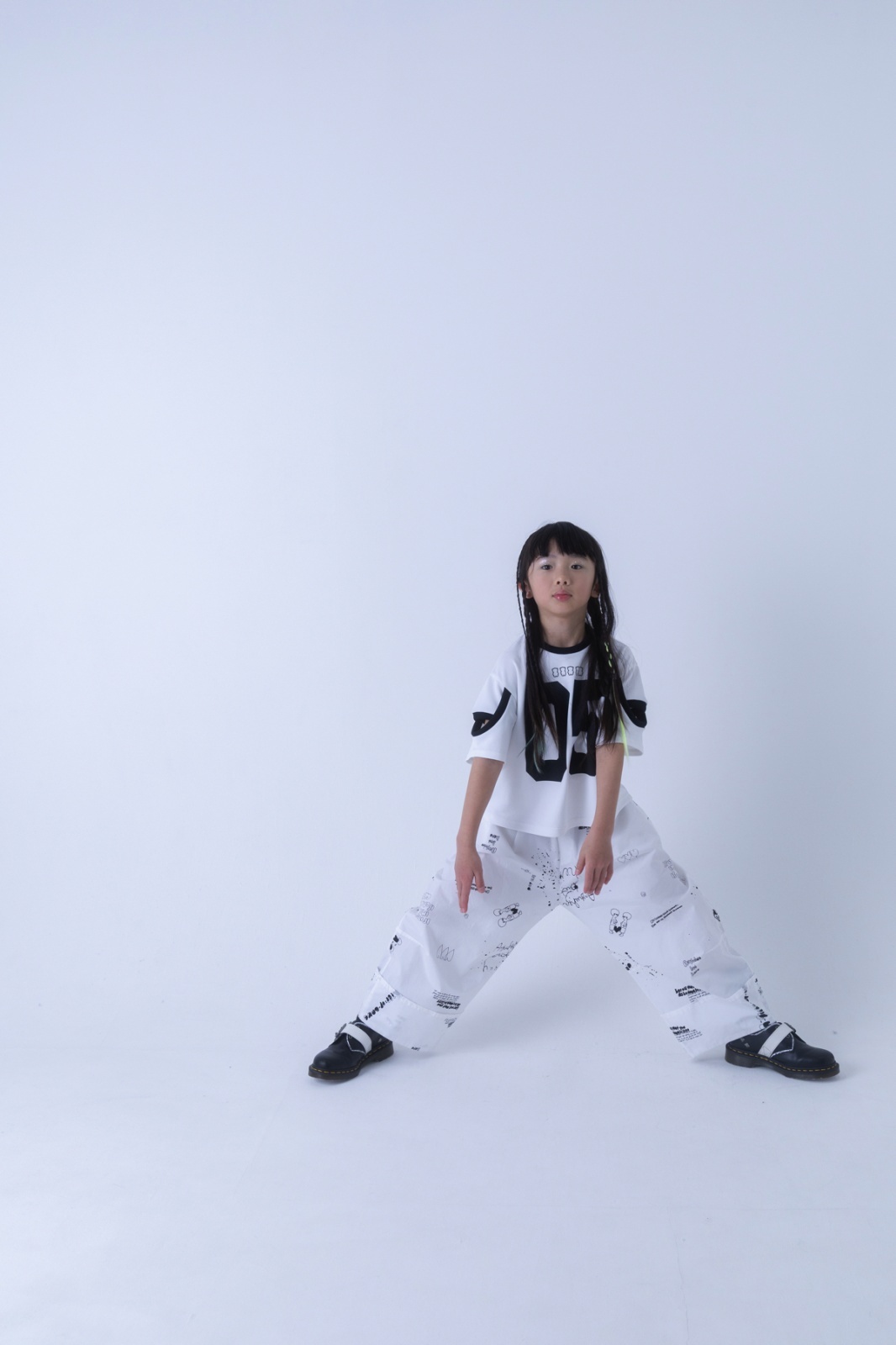 モデル:身長134cm/着用サイズ:Lサイズ/着用カラー:ホワイト